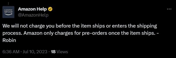 Can Amazon charge me before an item is shipped?